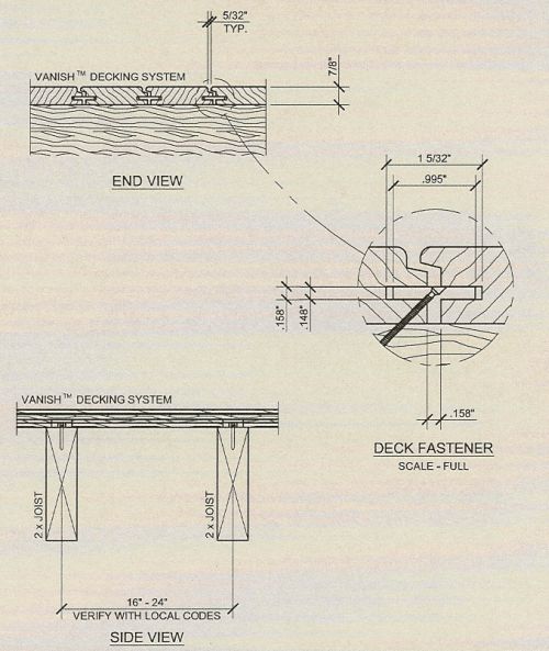 Decking: Only 5/4 boards (5/4×6 or 5/4×4) boards are eligible for the Vanish profile.